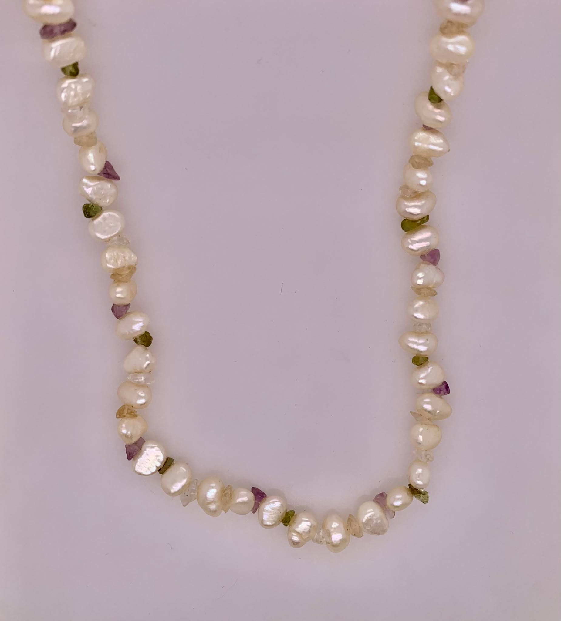 Estate freshwater pearl necklace with alternating color crystals. 17
